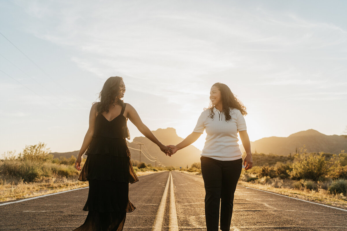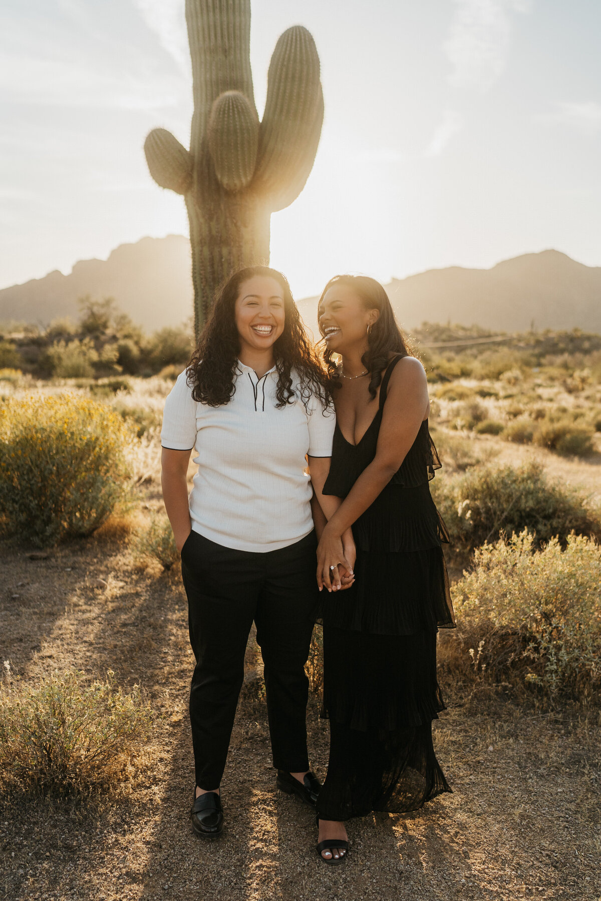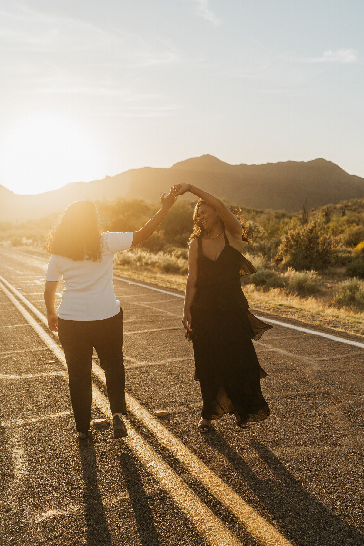 Ayanna & Bryanna wanted all the happy and free vibes for their Salt River engagement session. Starting at the Phon D Sutton Recreation area, Ayanna and Bryanna had the best time splashing around in the river and celebrating their love. After, we headed to the desert for the perfect golden hour vibes.